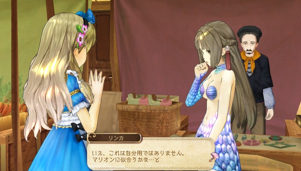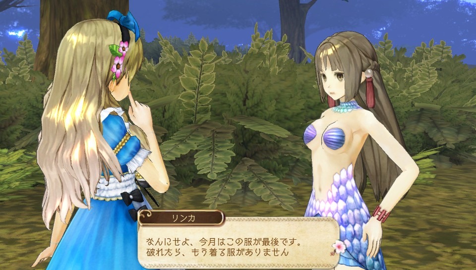 Gust also made new costumes for the lead characters in Atelier Ayesha Plus. Ayesha has an Alice and Wonderland inspired Wonder Girl outfit. Linca is dressed in the Mermaiden costume and Wilbell is wearing Bamboo Queen.
