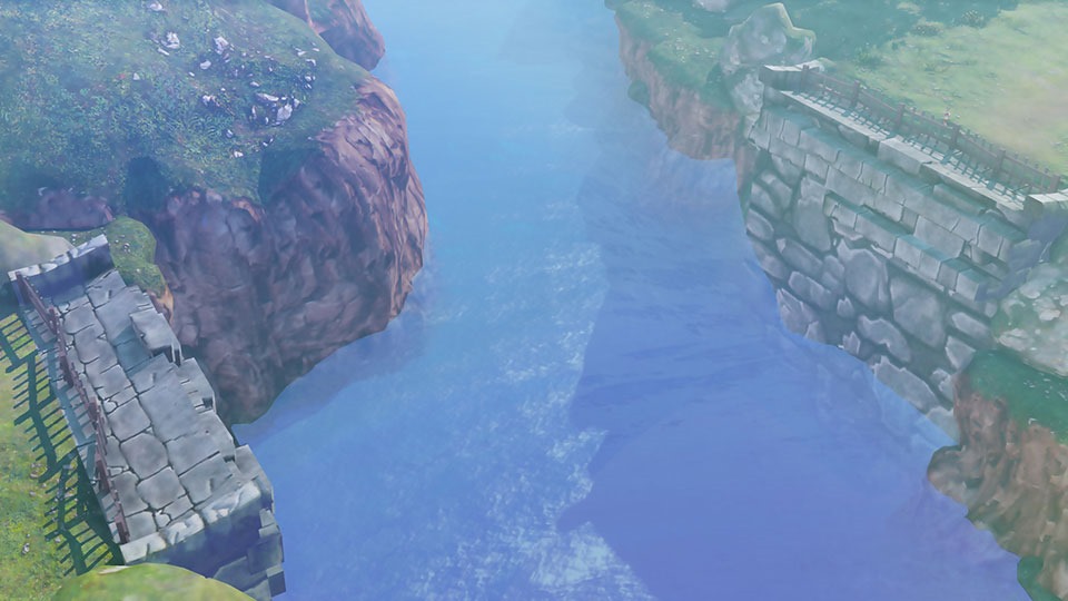 The above shows a broken bridge. She can choose to have it fixed by a carpenter after gathering the necessary materials using her mining experience. She can also choose to go around it, and maybe find a mysterious cave that can help her go beyond the valley.