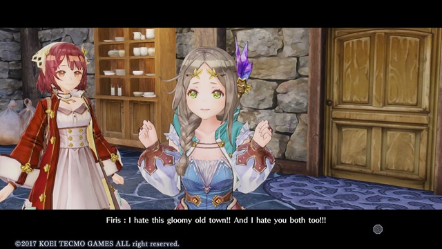 Her parents haven’t even had a chance to meet and get to know Sophie yet, this possible woman who would be responsible for educating and protecting their daughter, and had never seen their daughter profess any interest in this profession until this very moment. When they express concerns, Firis has an outburst. She proclaims that she hates them and staunchly refuses to even set foot in what was formerly her home until she leaves Ertona, staying instead with, you guessed it, people she didn’t even know until a few days before. She doesn’t even seek out her sister, Liane, again until Liane comes to see her. The second this little temper tantrum happened, I actually found myself talking to my television and saying, “Oh sweetie honey baby, no.” This is such a teenager moment, which is appropriate since that is exactly what Firis is.
