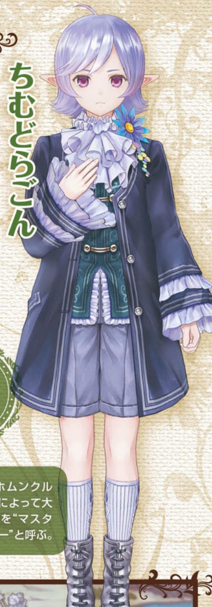 A coachman who does his work perfectly. He is one of the Chims homunculi, but he’s grown large thanks to a secret medicine. He addresses Lulua as “Nano Master” and Piana as “Master.” If the name sounds familiar, Chimdragon was named by Totori and previously fought alongside other Chims as part of the Chim Rangers.
