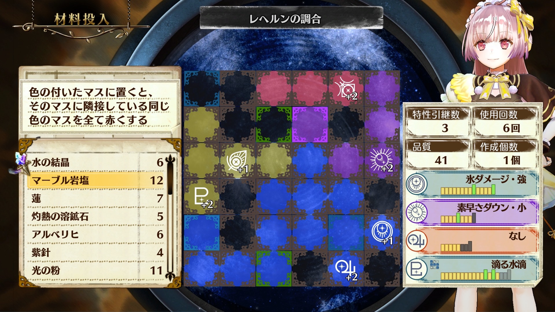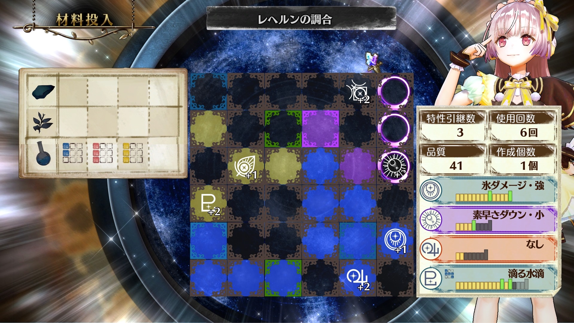002 Gust recently shared more details and screenshots Atelier Lydie & Suelle, with a look at some familiar faces in Sophie and Liane, an introduction for Matthias, and details on the game’s synthesis system.   025 Before getting into the details, if you’re wondering about the name, it was previously “Atelier Lydie & Soeur” but it appears that Gust has changed its romanized spelling to Atelier Lydie & Suelle, as shown in the updated logo, so we’ll be going with that from now.   Sophie Neuenmuller (CV: Yuka Aisaka) 003 Illustration: NOCO Age: 24 Height: 156cm Occupation: Alchemist   004 Sophie is an alchemist who has been traveling for a long time. As a senior, she’ll be around to share advice to Lydie and Suelle.  She can be absent—minded at times. She’s exceptionally talented in the field of alchemy, and has almost reached the same exceptional level as her teacher’s.   005 006 Sophie has gained quite the skills of an alchemist through her long travels. She goes around helping people with alchemy, while traveling for a certain objective.   Liane Mistlud (CV: Azusa Sato) Illustration: NOCO Age: 22 Height: 162cm Occupation: Hunter 007 Liane is running a shop called “Lovely Firis” to sell items she hunts in order to help fund her younger sister’s Atelier. She usually has a calm personality, and is an excellent hunter, but can get a little noisy and out of control when it comes to her sister. Her love towards her sister Firis has powered-up more than ever.   008 Liane is now running a shop at Merveille. She’ll be around to help out the sisters in different ways. Her love for her sister hasn’t changed, and it looks like it is greater than ever.   Matthias Ferrier Adalet (CV: Yuuki Inoue) 009 Illustration: NOCO Age: 23 Height: 186cm Occupation: Knight   012 A knight who can often be seen mucking about in the capital city of Merveille. He’s frivolous and playful, but has a serous side deep down, as he goes by Lydie and Suelle’s guard. He belongs to a group of knights and is quite the skilled swordsman. They say he has a sister, and he’s completely under her thumb.   010 011 We see Matthias invite Lydie and Suelle for some tea with a soft demeanor. However, he’s still a rather suspicious person that the two sisters don’t know too well, although his swift swordsmanship skills will help the two when it comes to battle.   Here’s a little recap on the game’s story:   013 Lydie and Suelle aim to run the best Atelier in the country. Contrary to their big ambitions, the two go through troubled everyday lives. One day, while working on synthesis, they hear a voice coming from the basement. While wondering what’s going on, they decide to check out the basement that their father told them to “never enter.”   014 The sisters find a mysterious painting inside the basement. And while looking at the painting, they get pulled into a world inside the painting. Bewildered at first, Lydie and Suelle find themselves tremendously excited upon seeing the world of the painting before them. While looking for a way back home, they start exploring right away.   Here are some details on Atelier Lydie & Suelle’s synthesis system:   The synthesis system is similar to what we’ve seen so far in the Mysterious series, with ingredients that go into panels for a puzzle-like system.   015 You start out by deciding which ingredients to use for making an item. From here you choose an ingredient as the catalyst of the synthesis, which then brings out special panels for bonus effects.   016 By placing ingredients on the panels, you’ll get various bonus effects from the special panels.   017 During synthesis, you can use “Activation Items” at anytime. When using an Activation Item, you can greatly influence the synthesis item’s effects and characteristics.   018 022 The item is complete after selecting all the items. If you added any special characteristics, the synthesis finishes up after you make pick the characteristic for the item.   And finally, we got a look at some more screenshots showing its world:   019 The above screenshot shows a cave inside a world, covered with ice that shines like crystals. You’ll run into various ingredients and monsters found in ice.   020 You’ll get to explore the worlds inside paintings to find ingredients used for synthesis.As for synthesis recipes, you can find them through gathering, fighting, and exploring.   021 Here’s a look at the image board for the icy world.   Atelier Lydie & Suelle: Alchemists of the Mysterious Painting releases in Japan this winter for PlayStation 4, PlayStation Vita, and Nintendo Switch.