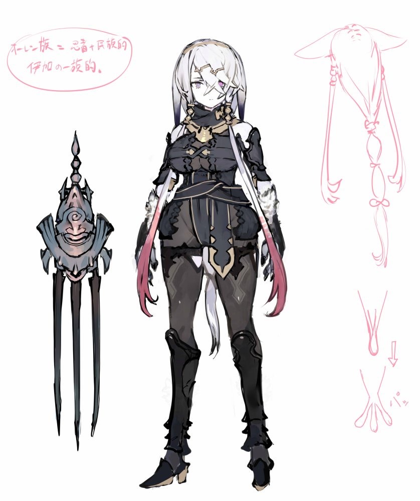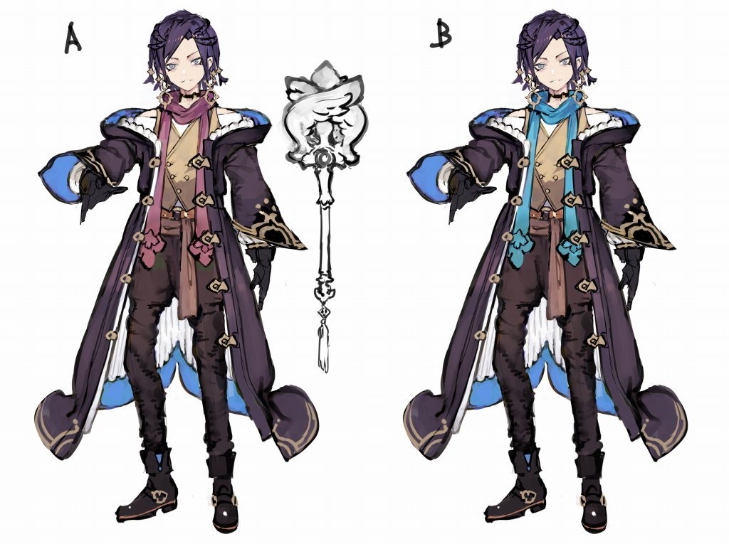 As for Lent, Hosoi felt that he looked too pretty, so they decided to put in more details for a new design. Toridamono prepared about five variants and said to choose whichever one Gust wanted, which was a rare occasion since he’s usually more of a one-and-done kind of artist. However, none of the above designs were chosen because according to Hosoi, Toridamono said that he “Kind of didn’t like them” as he wasn’t too thrilled about their skeleton and silhouettes.