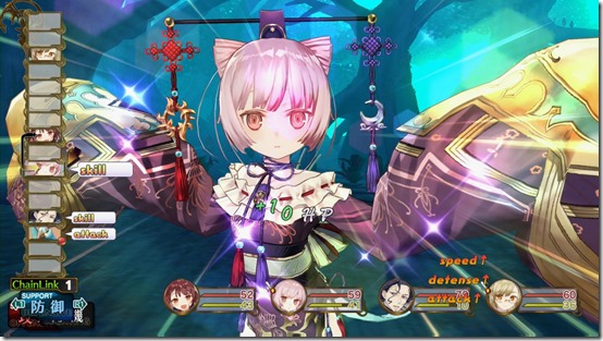 Atelier Sophie has a cooperative ability feature called “Chain Link”. This is activated by filling up the meter on the bottom of the screen, and you do so by using items and attacking. It gets lowered by taking hits. Chain Links require you to match characters and their stances (attack/defense) in order to pull off. Here are some of the abilities you can do with Chain Link: