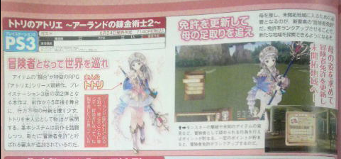 The brief in Famitsu explains Totori is the protagonist and the game takes place in Arland, five years after the events in Atelier Rorona. Atelier Totori is slated for June 24.