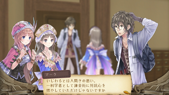 Oh, you don’t recognize the last two characters? Gust just introduced them. The guy with the glasses is Marc McBrine, a mechanic that likes to excavate ruins. Mervia Siebel is a rough adventurer with a huge axe.