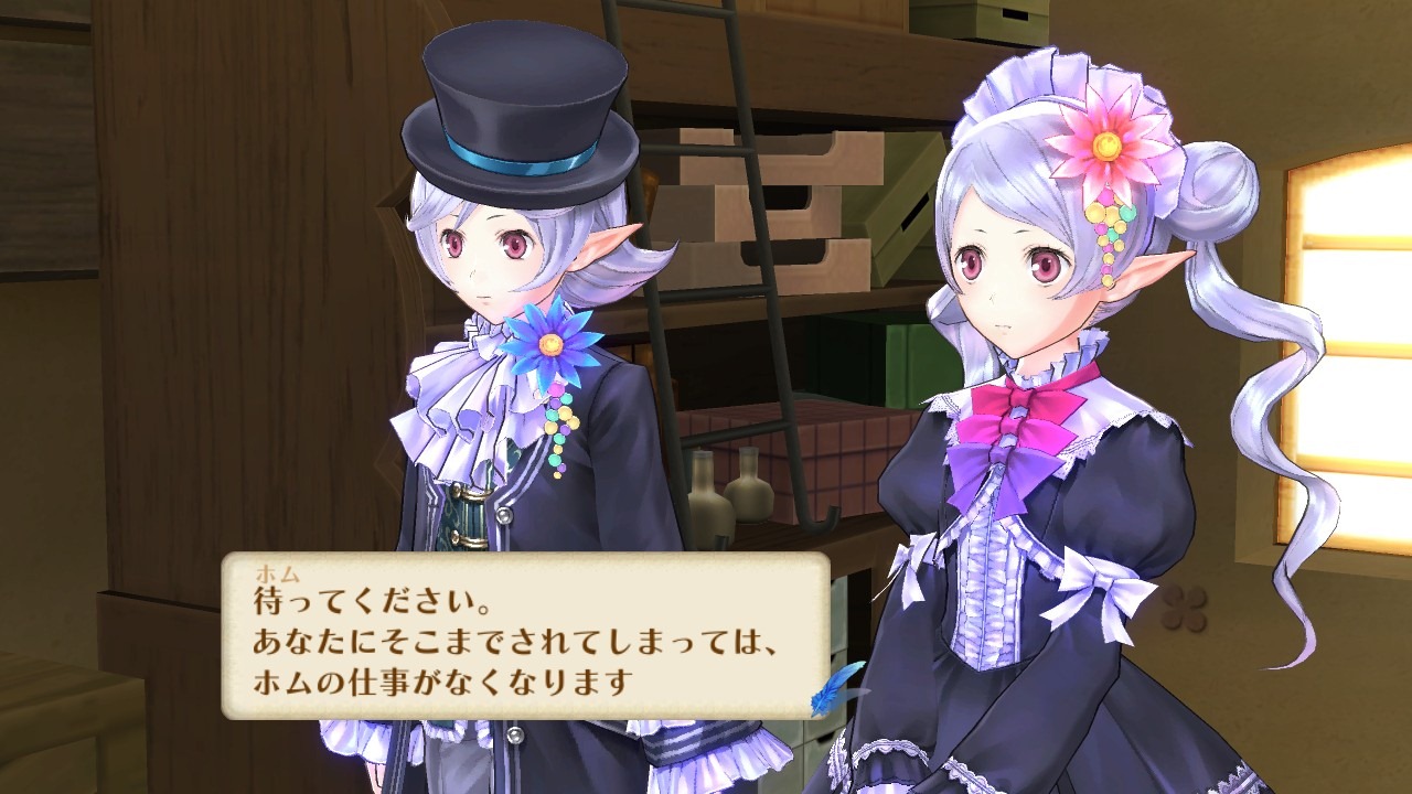 Created by Astrid, the two homunculi Hom and Hum, return from Atelier Rorona. They’re in charge of taking care of little Rorona. Bit by bit, these two artificial life forms begin expressing more human emotions.