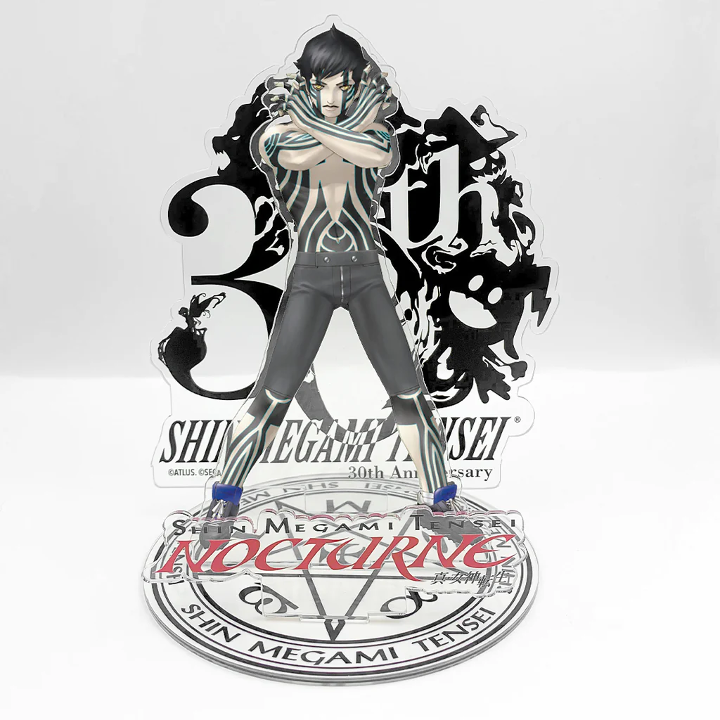 In celebration of the 30th anniversary of the Shin Megami Tensei franchise, Atlus has added a line of protagonist acrylic stands to its SMT collection of merchandise. The Shin Megami Tensei 30th Anniversary acrylic stands are priced at $19.99 a piece and are all available now on the Atlus online store. Each acrylic figure is seven inches tall and comes with four parts: a base featuring the SMT logo, a separate red part with “Shin Megami Tensei” written in red Japanese text, an SMT 30th anniversary back plate, and the protagonist of one of six SMT titles. Here’s a full list of the new SMT acrylic stands: