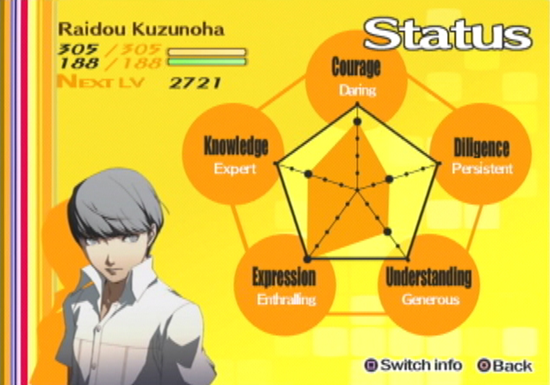 One picture buried in the lot sparked my curiosity. The image above is a picture of the main character’s personality traits. The protagonist in Persona 4, like most Shin Megami Tensei games, is nameless. However, instead of giving him a name like AtlusARAM or Jack Frost someone decided to call him Raidou Kuzunoha, and as most of you know Atlus has one more PS2 game in their pocket Devil Summoner: Raidou Kuzunoha vs. King Abbadon.