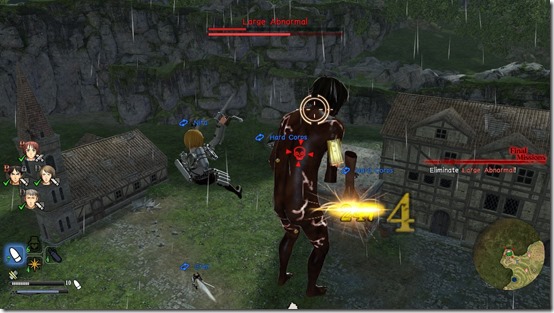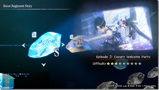 In Character Adventure Mode, you play through a series of events and stages all neatly lined up in crystal format. These feature story sections that basically go over the plot as shown in Season 3 of the anime, including the fight to rescue Eren from the Military Police and the fight against Rod Reiss’ oversized Titan. One of the benefits to playing through Character Adventure Mode is how the mode is peppered throughout with extra missions that show off a different side to the story. For example, where normally you’d play through as Levi in an attempt to find Eren and Historia, a mission that also introduced Kenny Ackerman, I’d also find remixed stages like a Mikasa-led strike against most suspicious wagons that might contain Eren, showing off what the rest of Levi Squad was doing when Levi was off sneaking through the town avoiding the Military Police. It’s a nice change of pace that sometimes has varying objectives, and adds some depth over just following the main plotline of the anime.