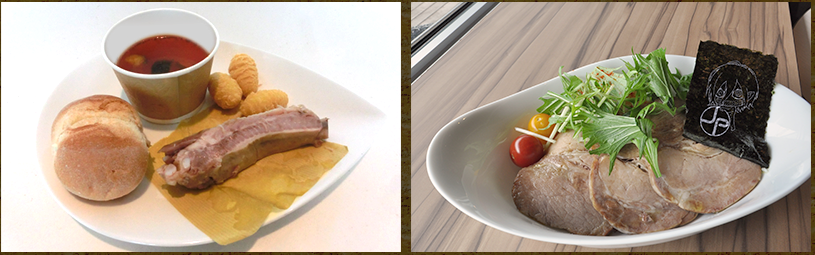 There will also be a variety of Attack on Titan themed carnival games with prizes featuring original artwork that cycle out monthly. If you get hungry at the event, you can get your fill of Attack on Titan themed dishes at the Floor Frame café. Some of the dishes get pretty creative, like the New Recruit dish that serves you a practically raw short rib, or a Superior Officer dish that comes with three pieces of pork chashu and a print of Eren in titan form on a piece of seaweed.