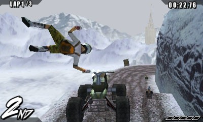 On the Nintendo DS, you only had the D-pad to work with, whereas now you’ve got the Circle Pad, which is like an analog stick. What kind of changes did that lead to? Well, due to the fact that we wanted to also support the +Control Pad on the 3DS in addition to the Circle Pad, we did not change much for the Circle Pad. It is really just a choice of personal comfort. How do you design the AI for a game like ATV Wild Ride 3D and make sure that it’s challenging enough? Could you give an example of what kind of things the AI reacts to? Yes, the AI is one of the most difficult things to create for a racing game. It was important for us to provide AI racers that can pose a challenge to the player so single-player modes are fun. I think if you’re not being challenged in a racing game, you’re not having fun. For each race course we created a special “invisible” data course that lies on top of the geometry race course you see in the game. This aids the AI racers’ navigation. The data courses contain definable regions that communicate information to the AI racers such as, preloading zones and no nitro zones to help the AI perform seemingly intelligent and not going flying off the edge of a cliff in spectacular fashion. Each ATV has a unique set of parameters that affect top speed, turn radius, and such. Adjusting these changes how well an ATV performs in terms of speed and effectiveness. In addition to these parameters being different for each ATV you choose to race with, AI racers are also adjusted in real-time based on the player’s position in an effort to keep the pack together. Rubber-banding can be seen as a somewhat controversial method, however. Some games are very heavy-handed with this approach to the extent that you feel as though the game is “cheating”. We spent a lot of time to make it subtle and fair in our game. Initially, ATV Wild Ride 3D was meant to be a retail game and you were looking for a publisher to pick it up. I believe Ignition’s name was attached to it at one point. Yes, we were shopping the game around to various publishers in the hope that it would see a retail release. It is interesting how much has changed since that time for Renegade Kid and the industry as a whole. Markets such as the Nintendo eShop offer a legitimate avenue for independent developers to publish their own games, without the need of the traditional publishing partner. Mutant Mudds really opened up our eyes to the potential of self-publishing our games. Once you get a taste of that independence, it is hard to go back to the traditional ways. We are much happier releasing ATV Wild Ride 3D ourselves on the Nintendo eShop. It enables us to control every aspect, from the game content to PR. It also makes the quality of the game even more important to us. Each copy sold means something very special to us. Each dollar earned from the sale of our self-published games goes towards the development of our future games. That is both scary and exciting.