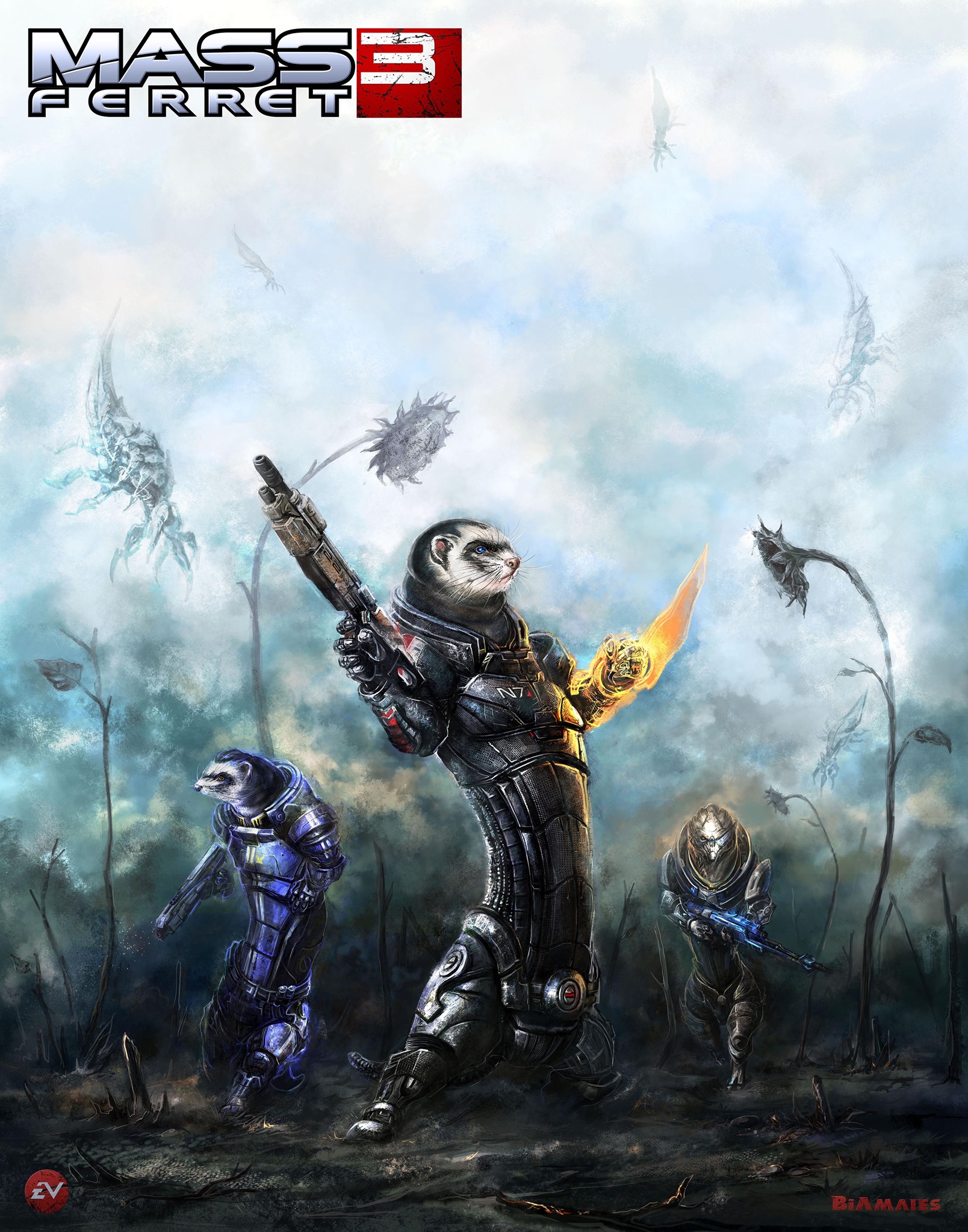 "Mass Ferret 3" is from Olesya Minevich aka Amales on Deviantart. She has a lot of ferret drawings on her page.