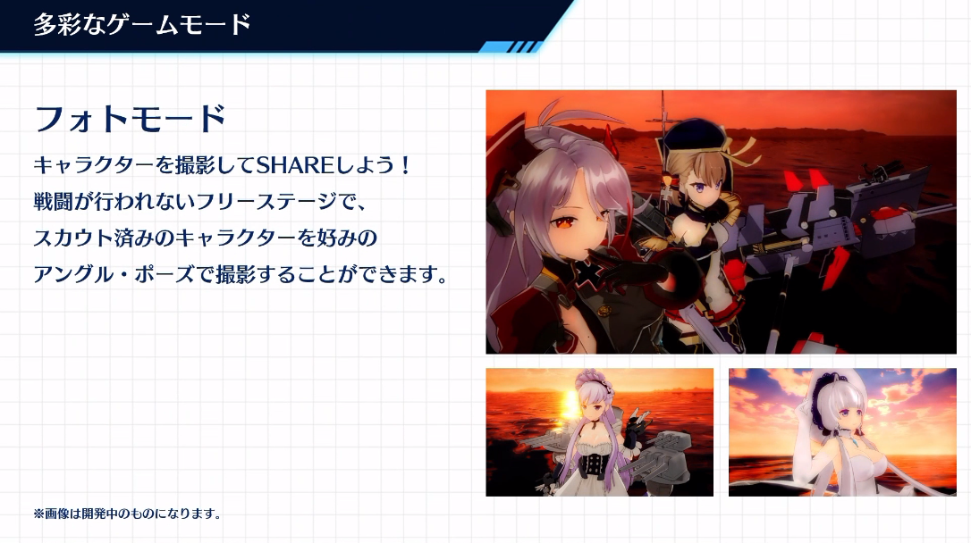In Photo Mode, take pictures of the many shipgirls from whatever angle you please in one of the Free Stages where no battles are taking place.
