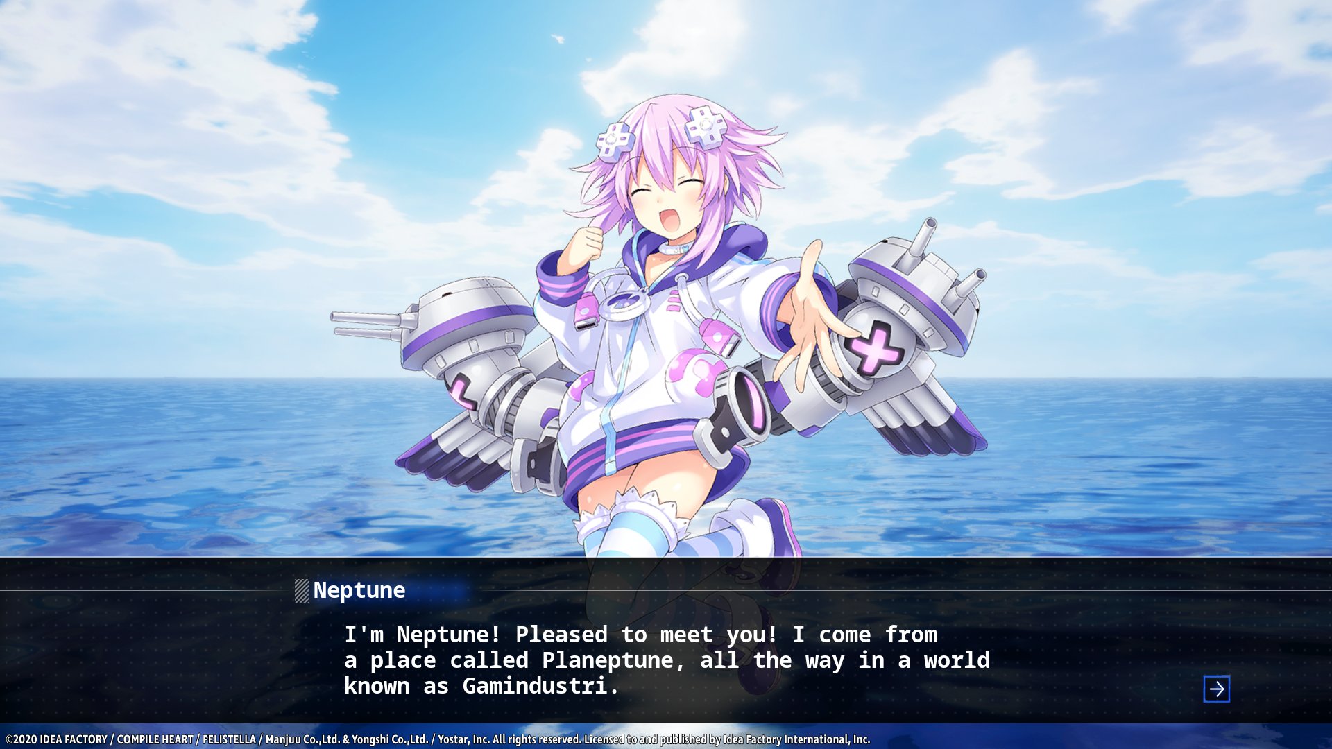 Neptune is the CPU of Planeptune, a nation in Gamindustri. She was summoned to this world for some reason. Her happy-go-lucky attitude and overall personality are set to full throttle as usual. She has visited many worlds and dimensions before, and this time, it looks like she’s teaming up with the girls of this world in order to offer them her full support.