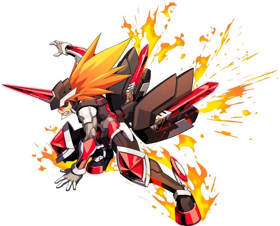 In the world of Azure Striker Gunvolt, individuals with special powers are called “psychics”. Normally, psychics possess psychic elements within their bodies that allow them to use their powers. However, the Sumeragi Corporation has taken seven powerful psychics and extracted their psychic elements into sword-shaped devices. These seven psychics, called “Swordsmen,” serve as Azure Striker Gunvolt’s bosses. Their swords—which can be used remotely to control any unwanted bursts of power—allow them to stay out of trouble and live ordinary lives. However, in cases of emergency, Sumeragi’s monitoring facility gives them access to these swords and they fuse with them, triggering a transformation dubbed “weaponization,” seen below.