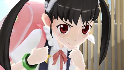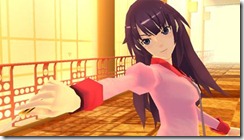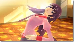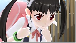 Namco Bandai set August 23 as the release date for Bakemonogatari Portable. The PSP game isn’t a beat ’em up, but it has scenes where characters fight. We have a bunch of screenshots of special attacks Koyomi and Hitagi use in the game.