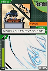 As Mashiro, you have to trace lines and fill in frames before time runs out. Make a mistake and you get a time penalty.
