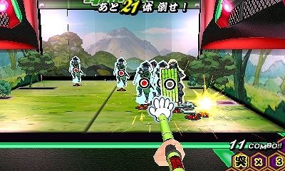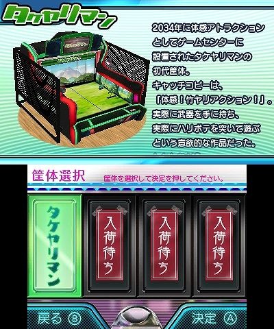 Poisoft is bringing an arcade game from the future for the Nintendo 3DS. The "story" behind Takeyari Man (literally: Bamboo Spearman) is the game is from 2034 where its in arcades, but you can play it on November 2nd because Takeyari Man will be released as a download on the eShop.