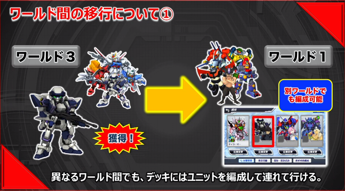 For now, it seems that there will be no story interactions between the four worlds. However, Bandai Namco confirmed that you will be able to take units acquired in other worlds into the stages. Speaking of switching worlds, that is easily done in the Story menu, but it’s recommended that you finish a story chapter first, as you lose progress if you’re in the middle of a story chapter when switching worlds. Finally, gameplay was shown off for the second chapters of World 1 and World 3, featuring Full Metal Panic! and Combattler V. You can check out the gameplay in the segment below (starts at 9:13 mark): Super Robot Wars DD is set to launch for iOS and Android in Summer 2019. The game is still undergoing some tweaks, and if needed, they will delay it to Fall 2019.