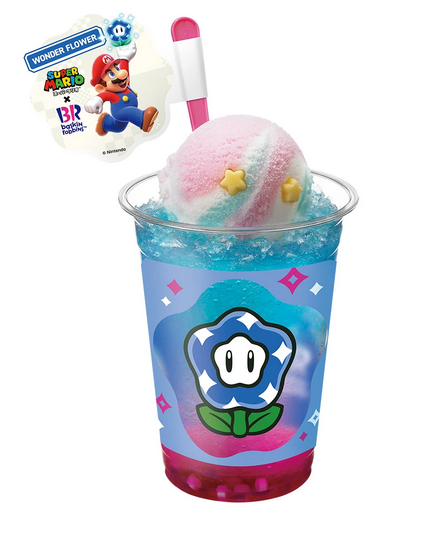 Aside from ice cream, Baskin Robbins is offering a drink based on the Wonder Flower. It’s a ramune with Pop Rocks that has a bit of shaved ice on it. The shaved ice is flavored with grape and soda syrup. You can also put a ball of ice cream to add more flavor or cold to the drink.