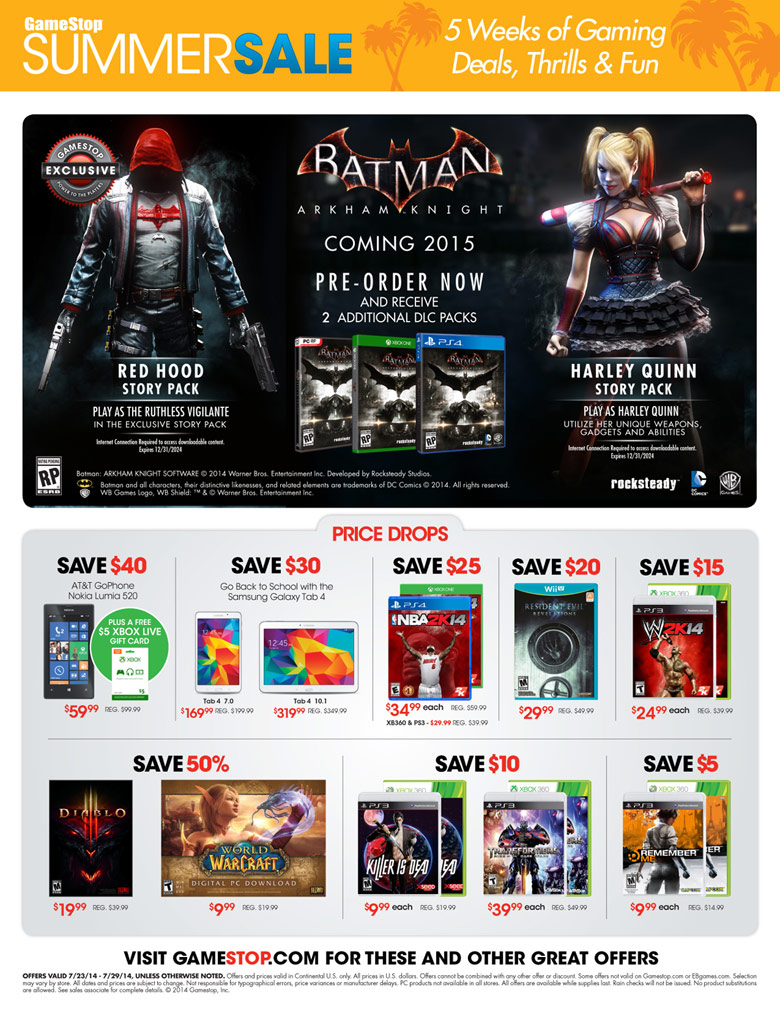 Batman: Arkham Knight will have a significant piece of GameStop-exclusive DLC when it launches in 2015, an ad on the retail chain’s website reveals. Pre-ordering Arkham Knight will allow you to play as the Red Hood in an exclusive Story Pack. The ad in question can be seen below:
