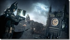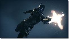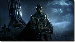 Warner Bros. have released new screenshots of Batman: Arkham Knight, the next open-world Batman game from Rocksteady Studios. The game is in development for PC, PlayStation 4 and Xbox One. “Arkham Knight” is both the name of the game as well as a new villain that Batman will face. The screenshot above shows the Arkham Knight character in a costume that looks similar to Batman’s, with the addition of a firearm. Batman: Arkham Knight is scheduled for release this Fall.
