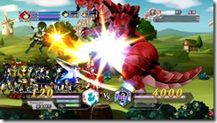 Just like in the Raging Brawl, your army has a moral gauge that lets you activate special attacks and maneuvers. Another part of fighting these monsters is changing your army’s formation. To go on the offensive, use the Attack Formation. To build up your defense and endure the enemy’s attack, use the Guard Formation. When you want to pull back your forces, command them to evacuate.