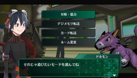 Digimon World Re:Digitize supports wireless battle, which uses the PSP ad hoc connection to link up to four players together. The option is selected from the title menu, and from there, you can select to play Cooperative mode or Versus mode. Cooperative mode places all players against enemies, and there’s a special mode called Boss Raid that pits you against a boss from the game.