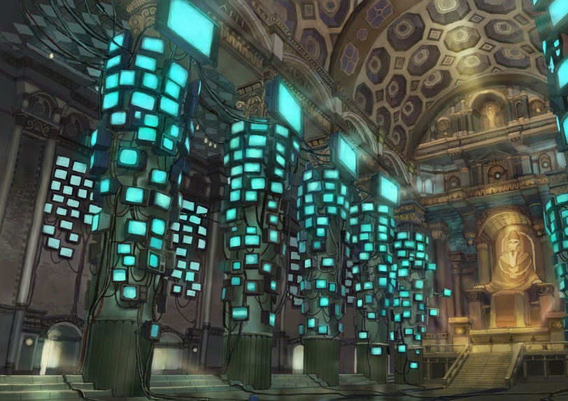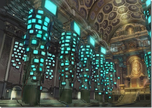 Meanwhile, Binary Castle (above) is a strange area revered as a holy area, with arching ceilings and pillars covered with monitors. It’s said to be where all the data in File Island is calculated. More information has been released about the DigiTower, too. The DigiTower, where the Coliseum and the training facilities are, is actually what was once Infinity Mountain. Enormous amounts of data constantly flow in and out of the tower between the Real World and the Digital World, and it can be said to be a pillar that supports and links both worlds. Several more Digimon in the game have also been released. These include Omegamon, Rosemon, Vamdemon, DORUmon, MegaSeadramon, and MegaDramon. Most appear as enemies, though you can almost certainly raise them as well. DORUmon also manages the wireless battle menu for you.