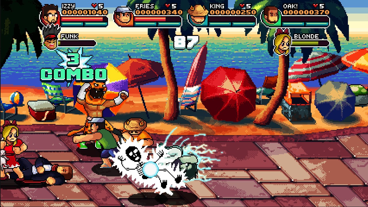 99Vidas offers little in the way of story, instead tossing the players onto the streets to fight against anyone who gets in their way. Players can choose from eleven unlockable characters, each with varied looks and super moves, to help deal with the influx of violent weirdos, and can also do so in four-player co-op.
