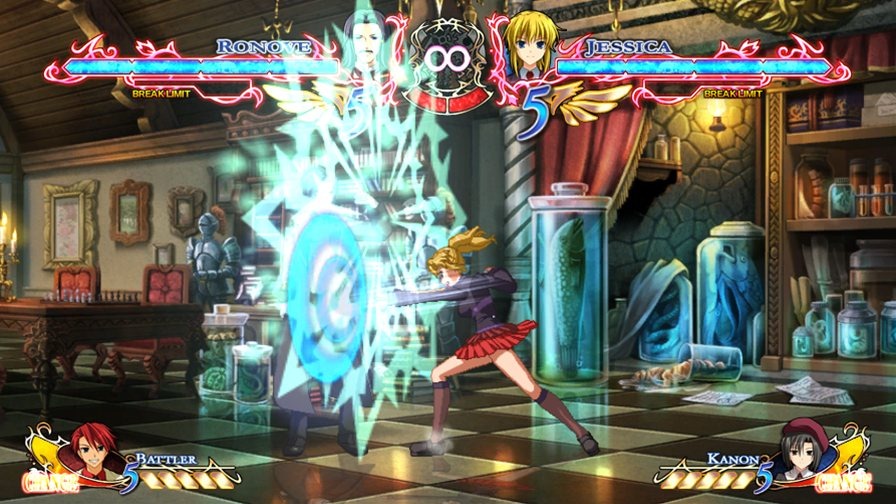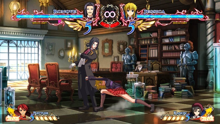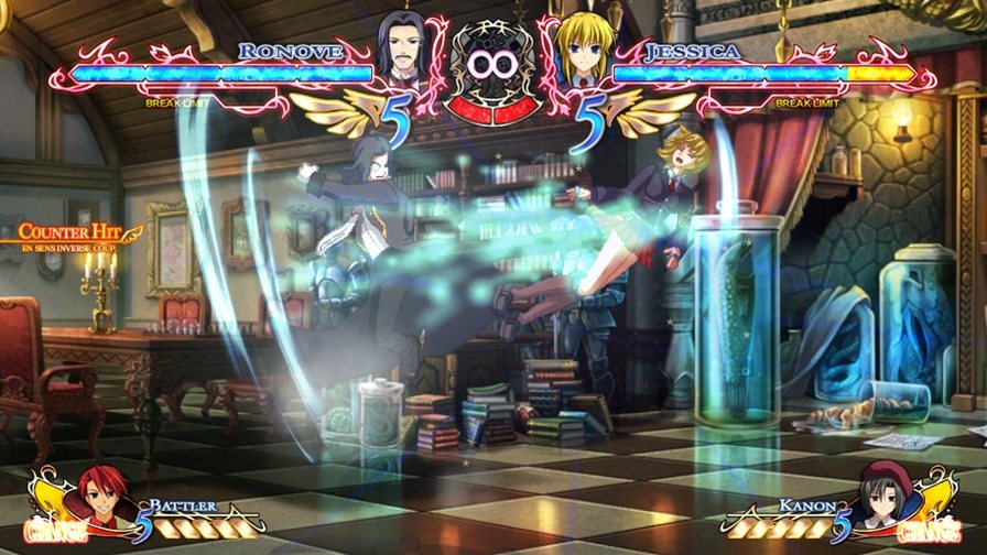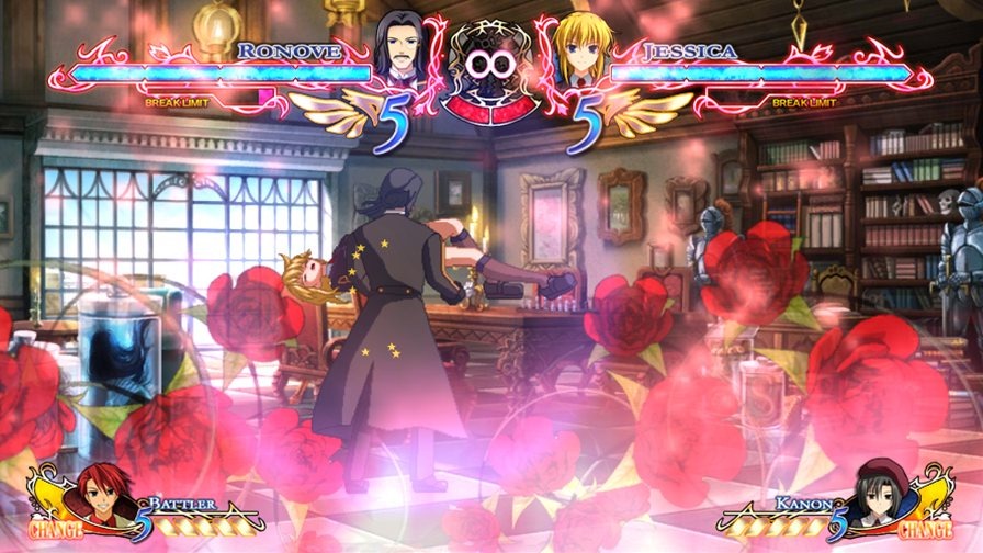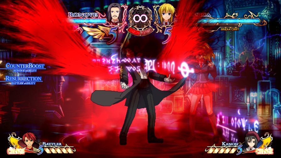 Time for one of Umineko no Naku Koro ni’s lesser known characters to shine. This week’s Ougon Musou Kyoku X’s character spotlight is on Ronove, Beatrice’s butler. Ronove’s character-specific ability in Ougon Musou Kyoku X is Counter Boost. It increases the damage inflicted by counter hits for a limited time: