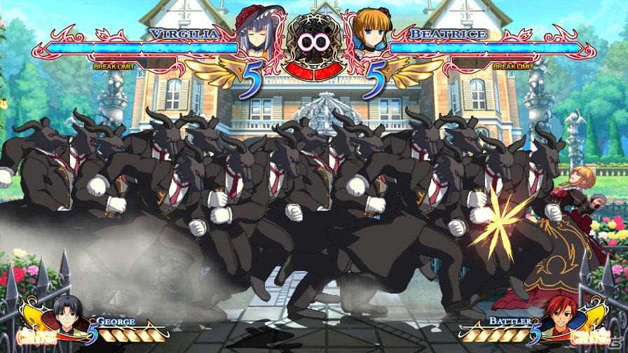 Virgilia’s ability in Ougon Musou Kyoku X is Brimful. It restores one bar of SP over a period of time. One of her special moves is Divine Spear: Gungnir. She can also summon a stampede of Goat Servants to trample her opponent. You can find more moves below: