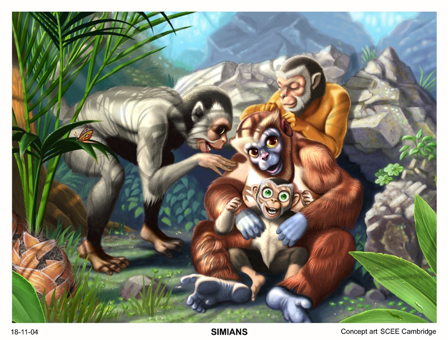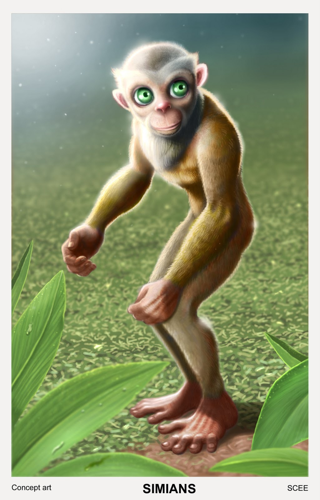 Simians was canceled in pre-production, but the concept and tech led to the development of EyePet. Note the "simian-larities" in art design. Since Eyepet is geared towards a younger audience, the horrifying spider monster didn’t make the cut.