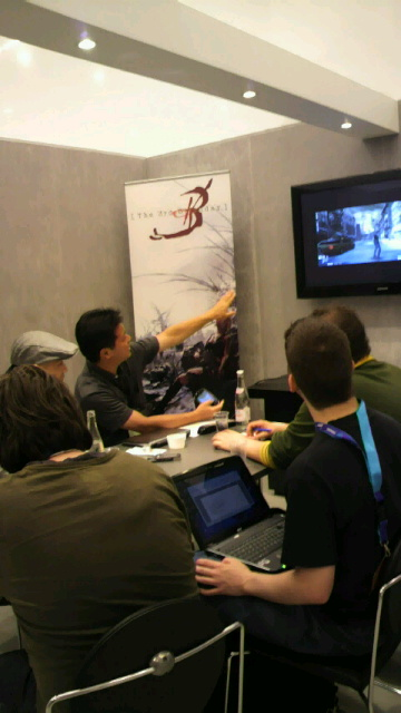 A member of the PR team posted these photos of Yoshinori Kitase, producer, demoing the game.