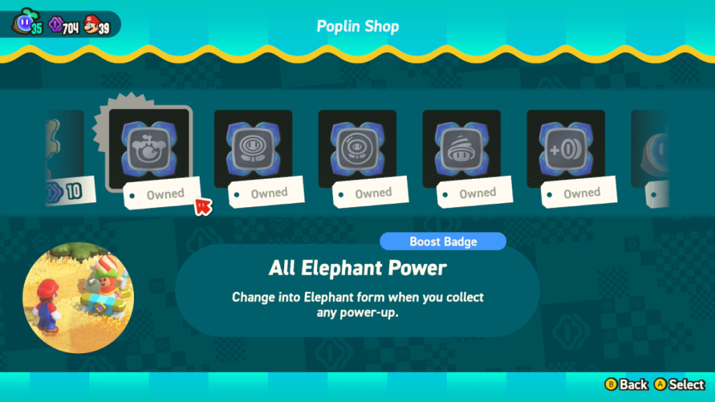 Some of the challenges and secrets require specific power-ups to complete. This includes needing to smash a wall of blocks with an elephant trunk or using a Drill to move through a narrow passage. Fortunately, Super Mario Bros Wonder has a series of badges that allow you to get whatever power-up you need.