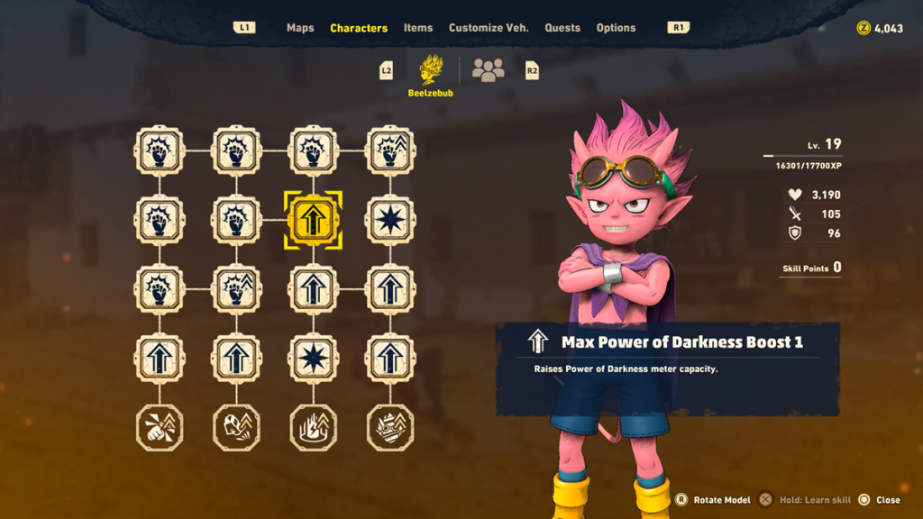 If you find yourself using a lot of abilities like Rush or Rock Throw, Max Power of Darkness Boost skills will increase your max darkness gauge by 100 points each, allowing you to store even more darkness and deploy various powerful attacks in quick succession. For defensive options, you will want to invest in Brace for Attack for quick recoveries from enemy blows or Aerial Evasion for an easier time dodging attacks while in mid-air.