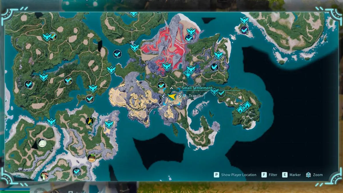Start at the Eastern Wild Island fast travel point on the north side and travel south around the island’s perimeter until you loop around and reach the fast travel point again. Along the way, you should spot several Foxpark Pals you can catch or defeat for Flame Organs. One run around the island should net you 20-30 Flame Organs.