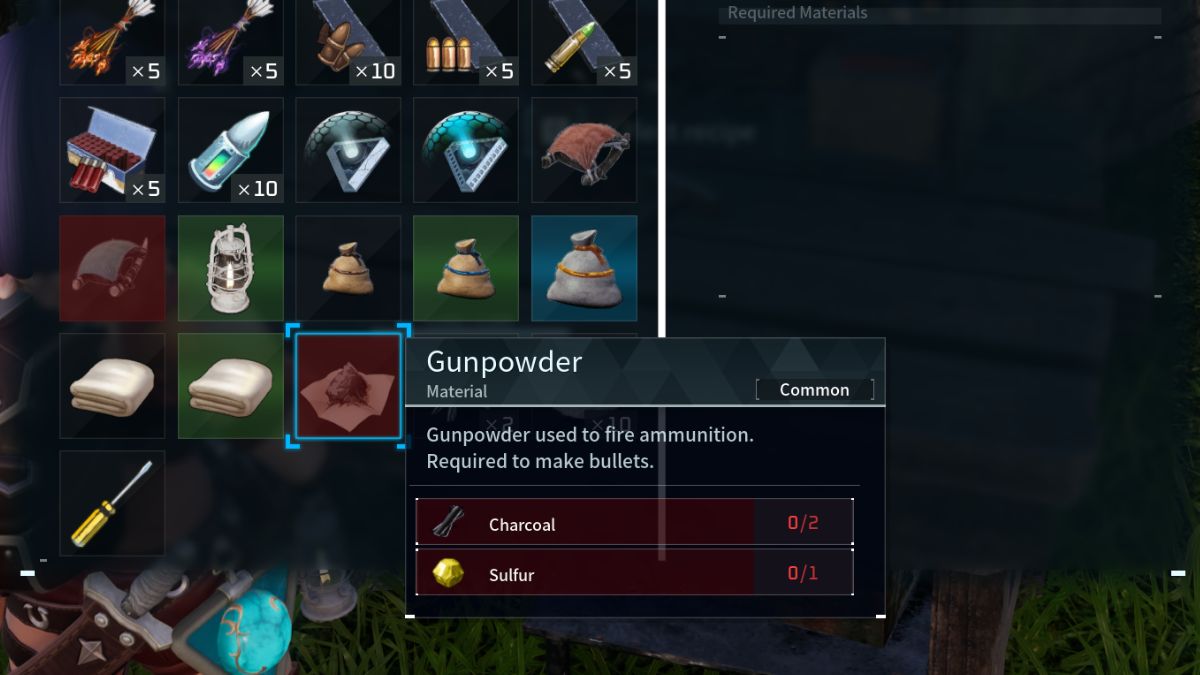 Alternatively, if you’d prefer, you can craft Gunpowder, rather than dealing with Tocotoco. To do this, you’ll need to be at least level 21 and have unlocked it in the Technology tab. You’ll also need the High Quality Workbench.