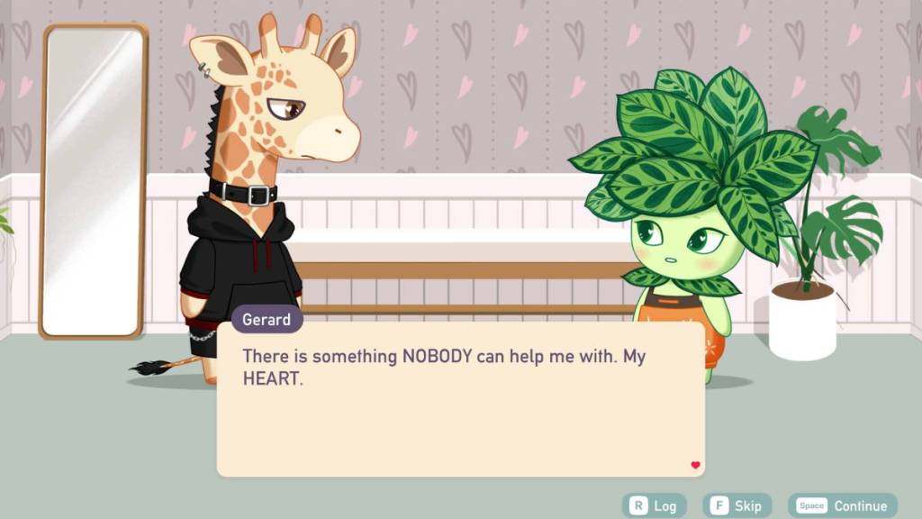 Remember how I said I paired up Chamel and Noir on a whim? Well, that resulted in my happening upon my absolute favorite pairing in Love, Ghostie, which involved getting the goth character Gerard and grounded plant person Calathea together. This whole storyline has a very friends-to-lovers tone, which is great. Calathea pulls Gerard out of a funk. Plus, there’s a fun Special date interaction you can get with this duo.