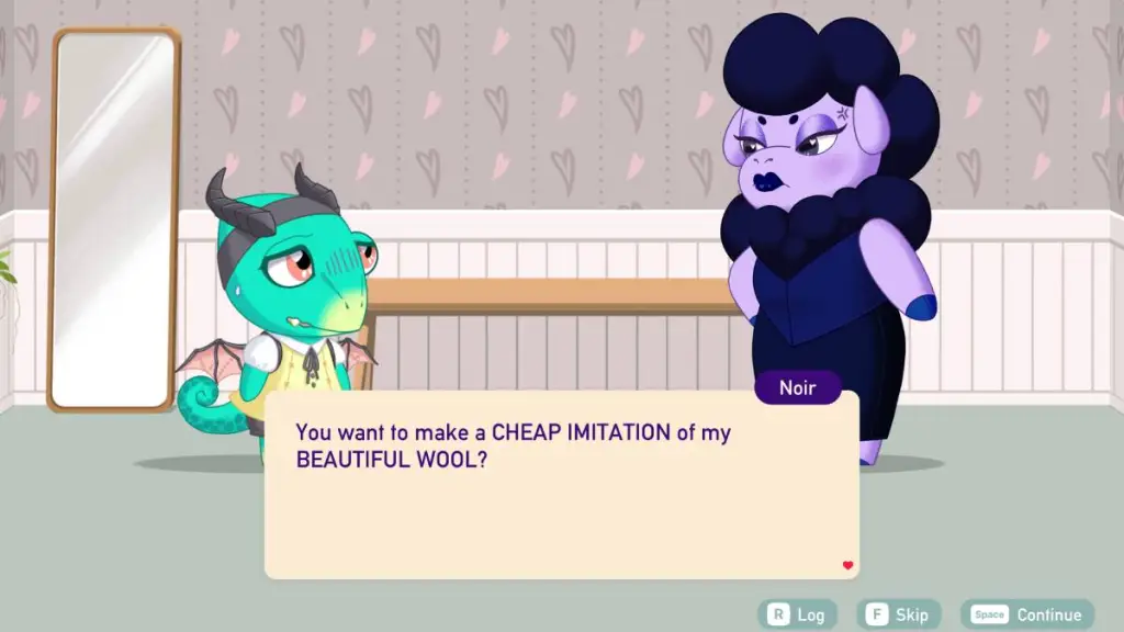 At first I was going to try and set up Sky and Wobbles. I liked the idea of the polar bear and penguin getting together. However… I didn’t care for their storyline together? It’s fine, but… yeah. I wasn’t feeling it! I honestly was just trying to find out what Felix liked when sending the character a gift with three tags, chose Wobbles since she didn’t have anyone, and the Love, Ghostie pairing ended up being super cute! I liked seeing Wobbles help Felix out!