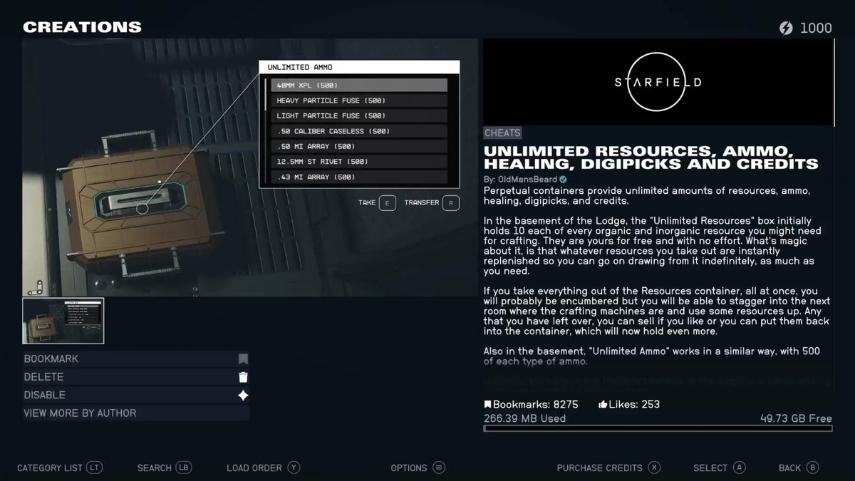 - Unlimited Resources: This mod pretty much breaks the game’s challenge since it gives you unlimited resources, ammo, credits, and more.