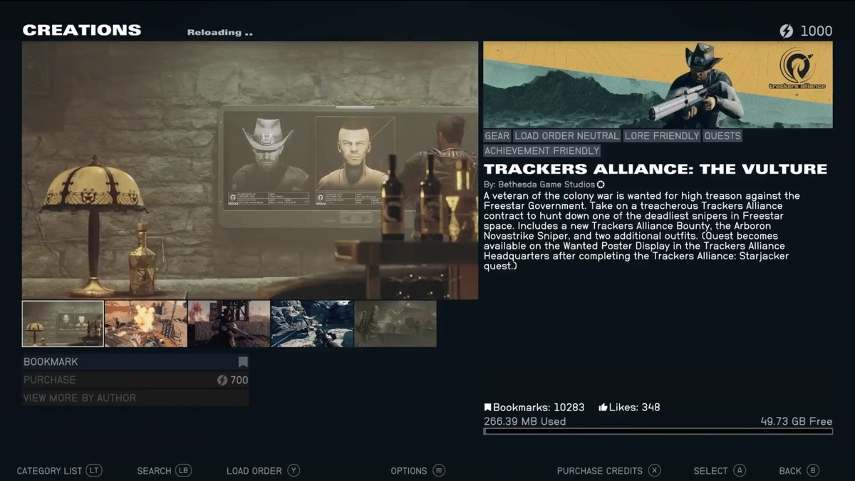 While a lot of Creation mods require you to spend Credits to download them, there are some free ones. They may not offer widespread new content, missions, and areas, but they could change or improve the gameplay. Here are the free Creations you should take a look at within the game:
