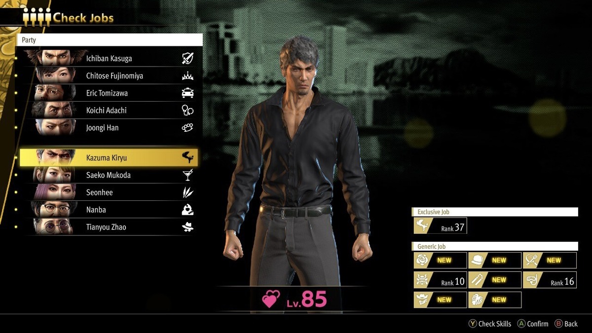 Again, Zhao is a decent alternative, but he comes so late into the game, he will likely be underleveled. Kiryu should almost always remain the Dragon of Dojima for the most damage potential. Saeko works well as a healer or support mage with her Barmaid, Idol, or Housekeeper jobs. Seonhee is a fantastic melee DPS or support character with Assassin, Kunoichi, and Night Queen. Finally, Nanba should be your other mage and healer with Homeless Guy, Chef, or Desperado.