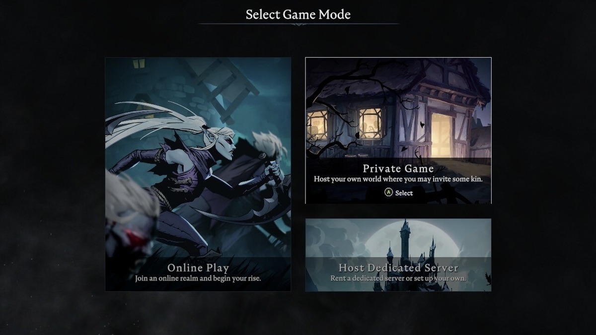 If you want to be able to tweak the server settings in this online vampire survival game, you’ll want to make a private or rented server. I don’t suggest renting a server, as that will definitely cost you some money. However, you can make a free private world for you and your friends (or just you alone like I did). To do this, select “play” and then “private game.”