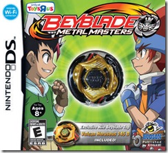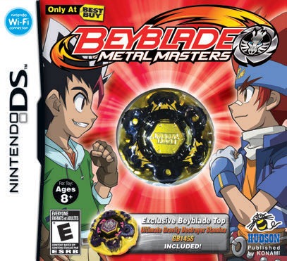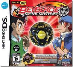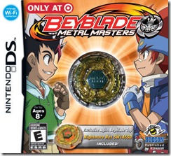 Yesterday, Konami released Beyblade: Metal Masters for the Nintendo DS in America. There are four variants of the game available, with a different real-life Beyblade top included with each one, depending on where you buy it from. Here’s the rundown of what you get where: