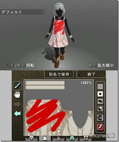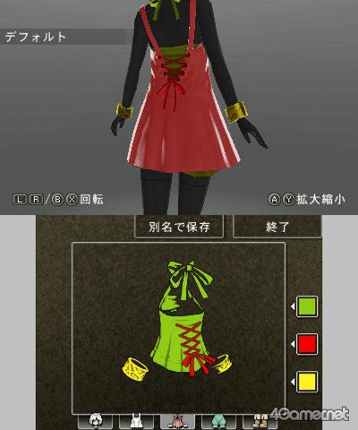 Japanese site 4Gamer have published an interview with the producer and director of Tri-Ace’s Beyond the Labyrinth on the Nintendo 3DS. Among other aspects, the interview touches upon costume changes for the game’s mysterious girl character. Beyond the Labyrinth lets you outfit the girl in different kinds of custom-created costumes. This is done using an in-game costume editor. Here’s what it looks like: