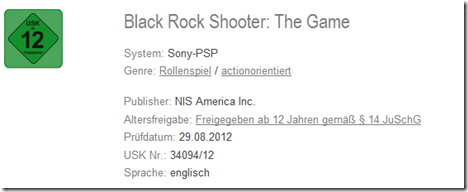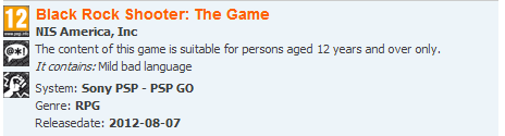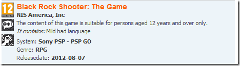 We might get an update about Black Rock Shooter: The Game soon. Two European video game oraganizations, PEGI and Germany’s Unterhaltungssoftware Selbstkontrolle, updated their database with ratings for Black Rock Shooter: The Game.