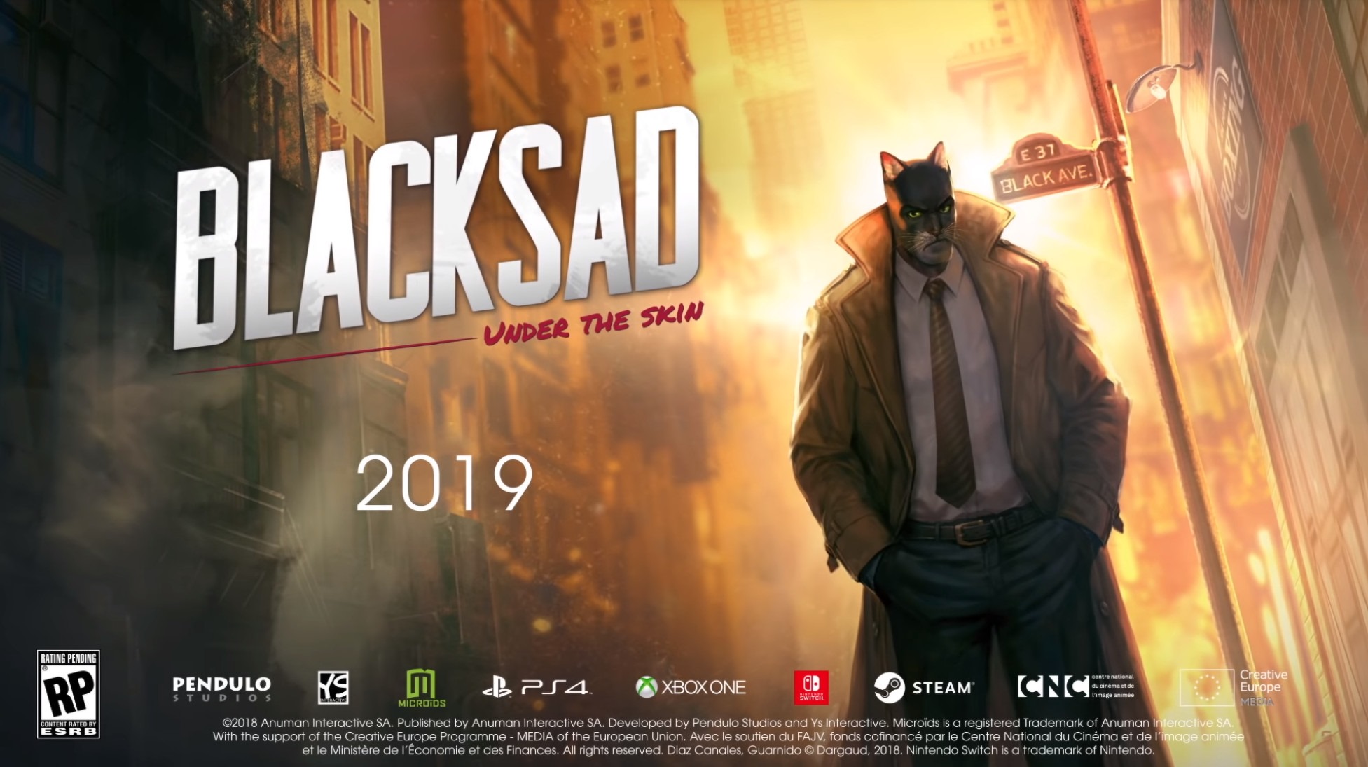 Blacksad: Under the Skin launches in 2019 for PlayStation 4, Xbox One, Nintendo Switch, and PC.