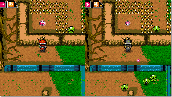 In addition to a color makeover for Jason and SOPHIA III, we can see that the strongest weapon in Normal Mode, Wave (Gun Level 8), doesn’t work against these enemies. You’ll have to choose the pertinent gun level for each enemy or else you won’t deal any damage here.