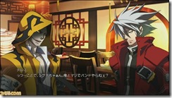 Famitsu reports, altogether there are eight gag scenarios including ones for Relius, Sector Seven, and Azrael. BlazBlue: Chrono Phantasma has some neat lobbies too. As reported earlier, players can decorate lobbies with furniture earned in-game or purchased as downloadable content. There’s a new Team Battle Room where players move their avatar to the red side, blue side, or stay in the middle to be randomly assigned a team. Players can chat with each other using text and emoji.